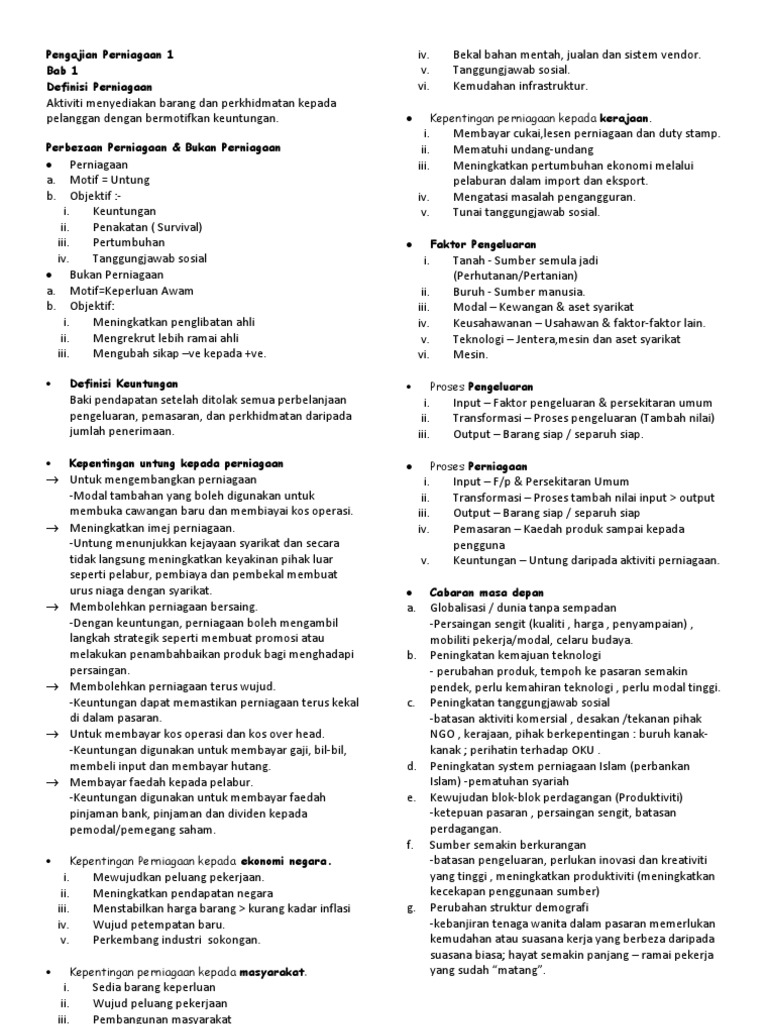 Nota Bab 1 Pengajian Perniagaan Pdf